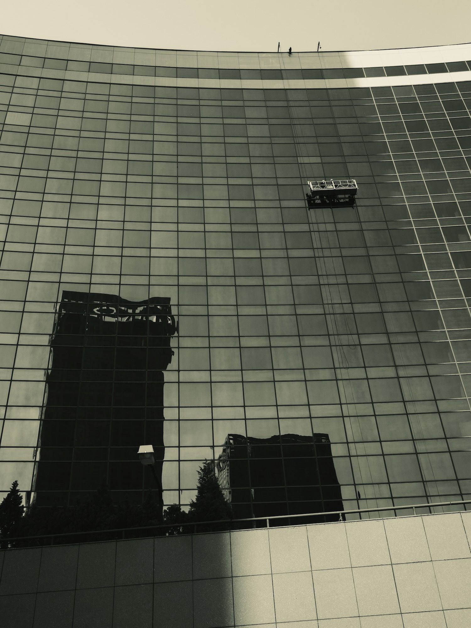 Soon after I started walking around, I noticed the window cleaners here, and I knew I had to take some photos. I only had my 17mm lens (35mm equivalent) with me, so I couldn’t get any close-up shots, but I tried to make something interesting.